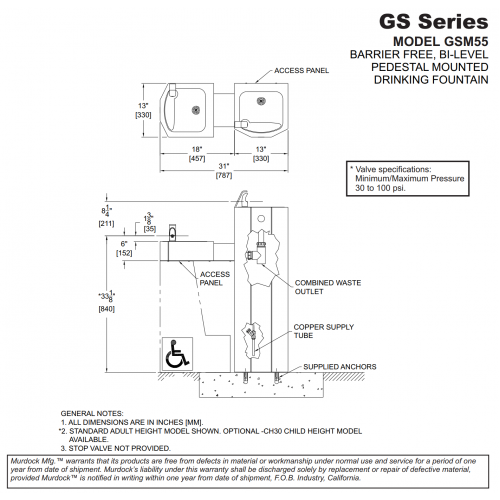 GSM55 Bi-Level Pedestal Mounted Square Barrier Free Drinking Fountain