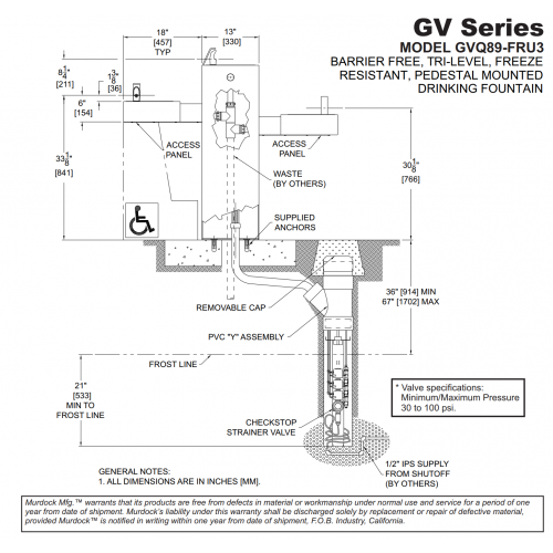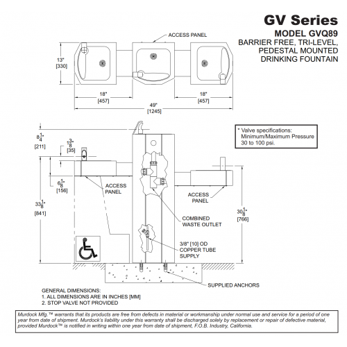 GVQ89 Concrete Tri-Level Barrier Free Pedestal Mount Square Drinking Fountain