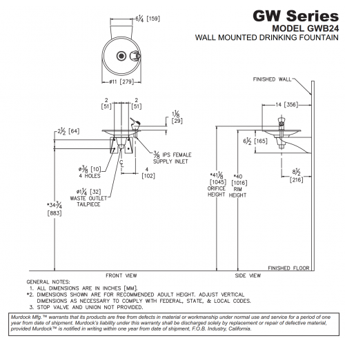 GWA74 Wall Mount Drinking Fountain with Lever-Operated Valve