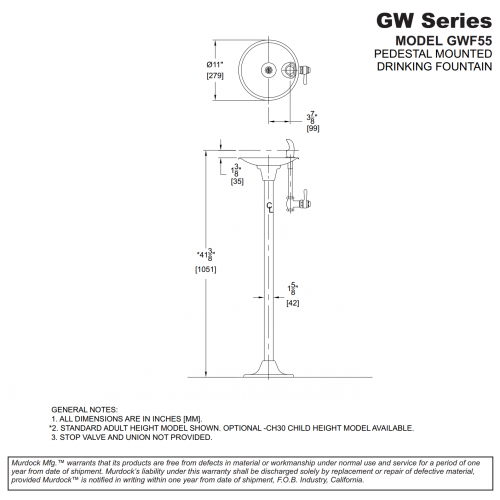 GWF55 Basic Pedestal Mount Drinking Fountain
