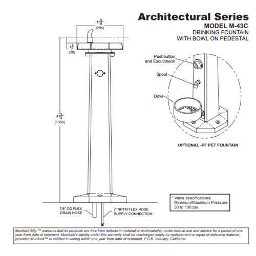 M-43A Bowl on Arm Architectural Style Drinking Fountain