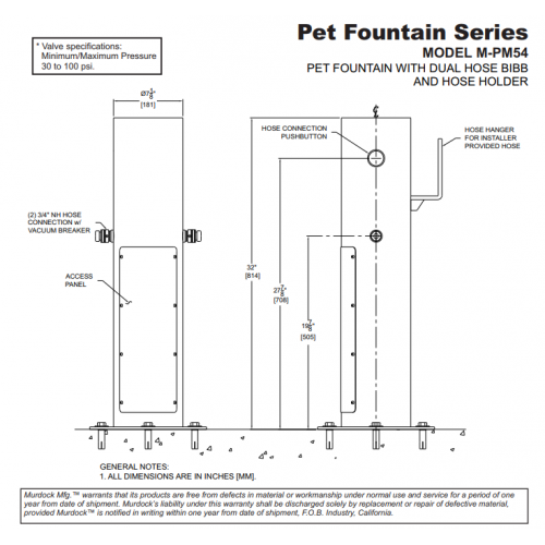M-PM54 Pet Fountain with Dual Hose Bibb and Hose Holder