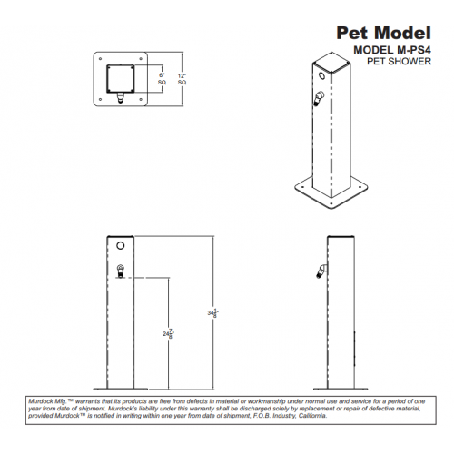 Column shower Murdock model M-PS4 Pet Shower is pre-piped and hydrostatically tested.