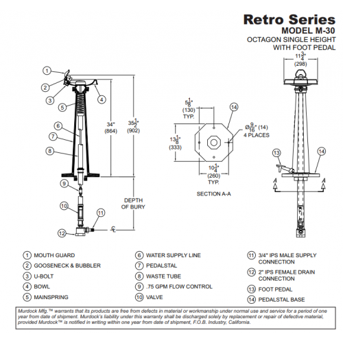 M-30 Foot Pedal Operated Retro Style Drinking Fountain